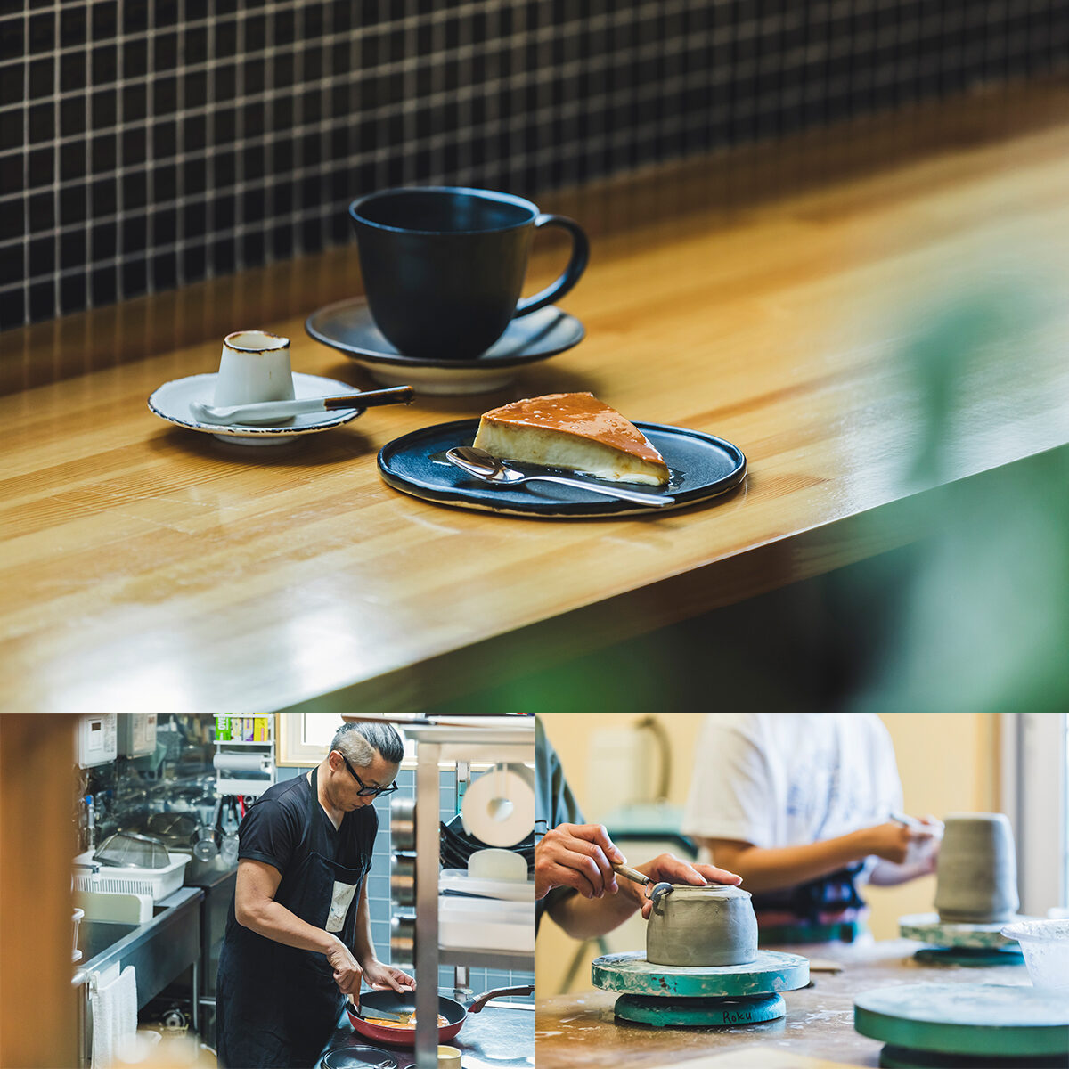 このお店はカフェに陶芸体験ができる工房が併設されています。とある場所の湧き水で淹れたコーヒーや、素材にこだわったカレー、パスタ、デザートなど、私が自信を持って腕を振るった料理を、口当たりや見た目にもこだわって作り上げた器でお出ししています。料理と器の両方を楽しんでいただけるとうれしいですね。